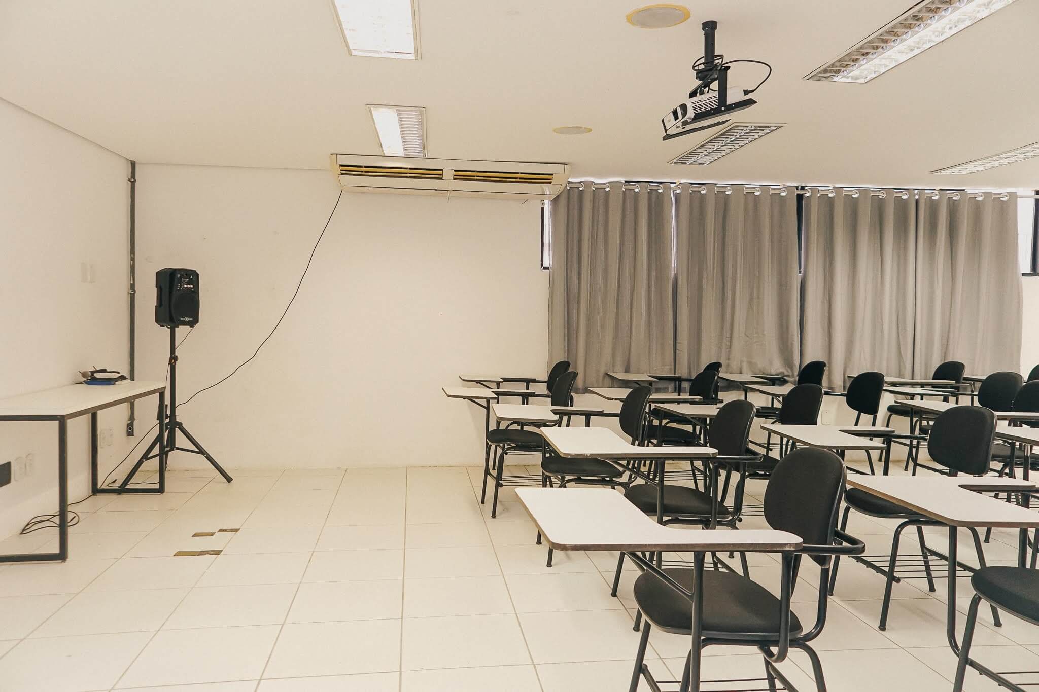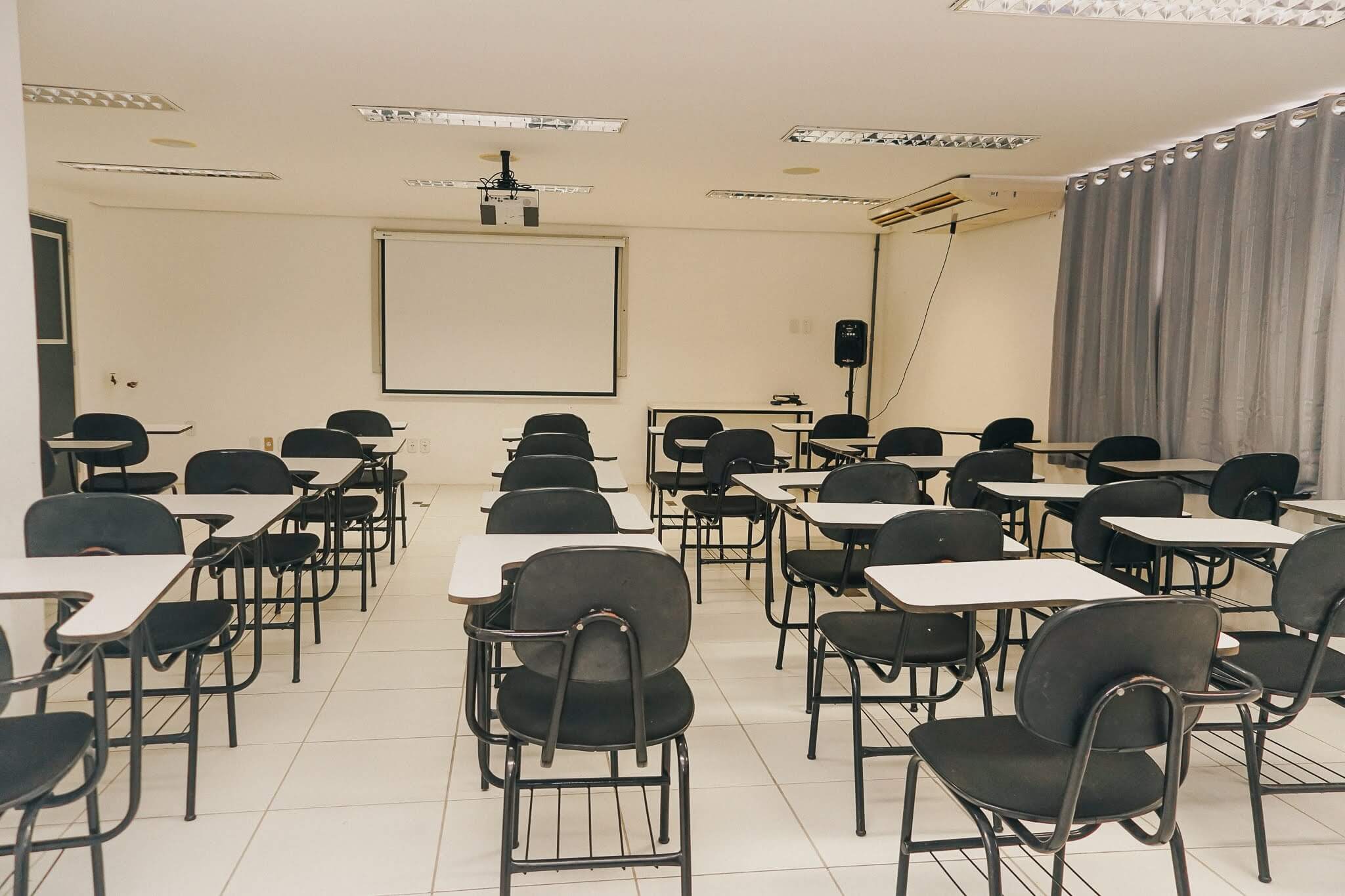Possibilidade de ministrar cursos e eventos nos finais de semana com cadeiras, equipamento de som e imagem com toda infraestrutura necessária.